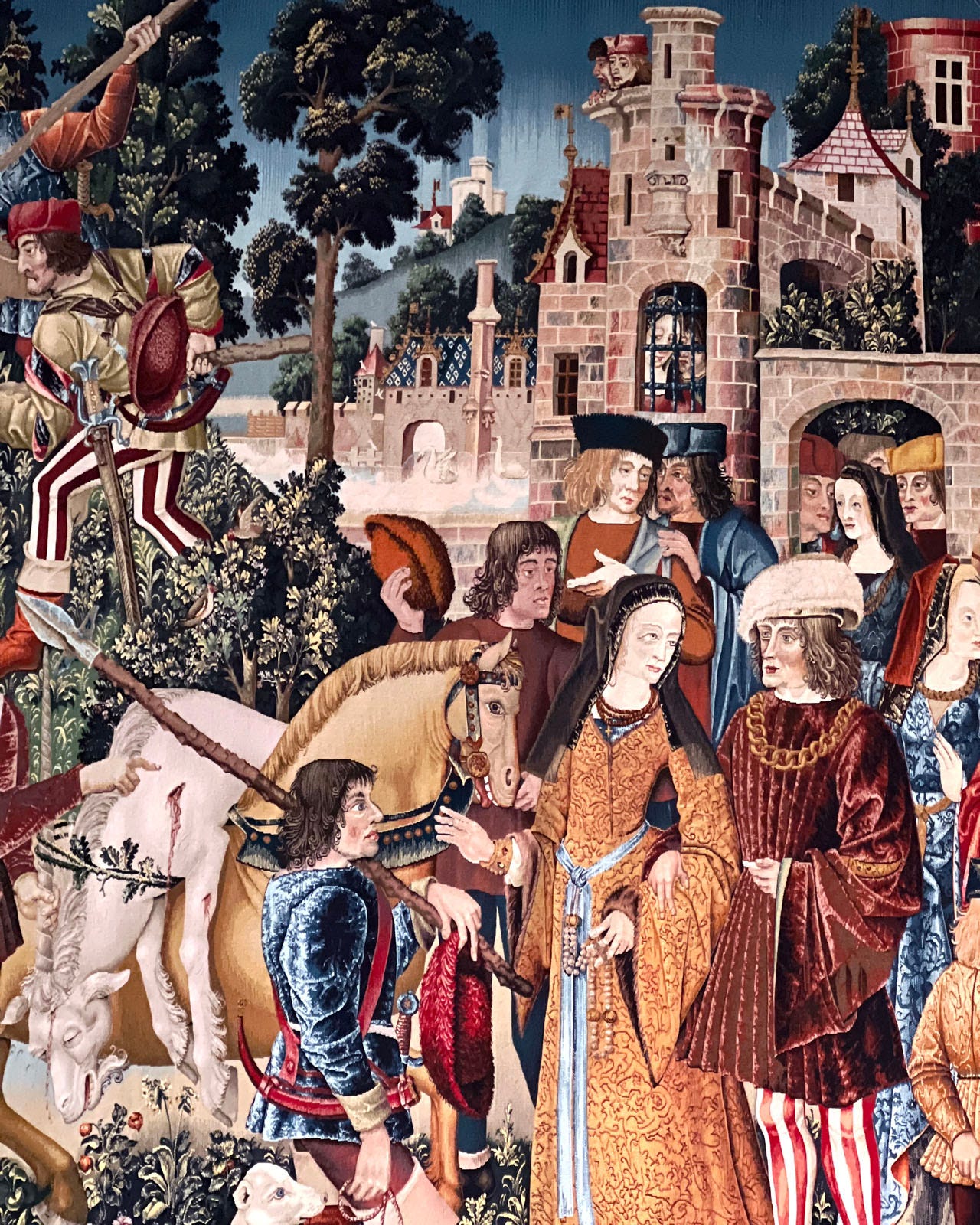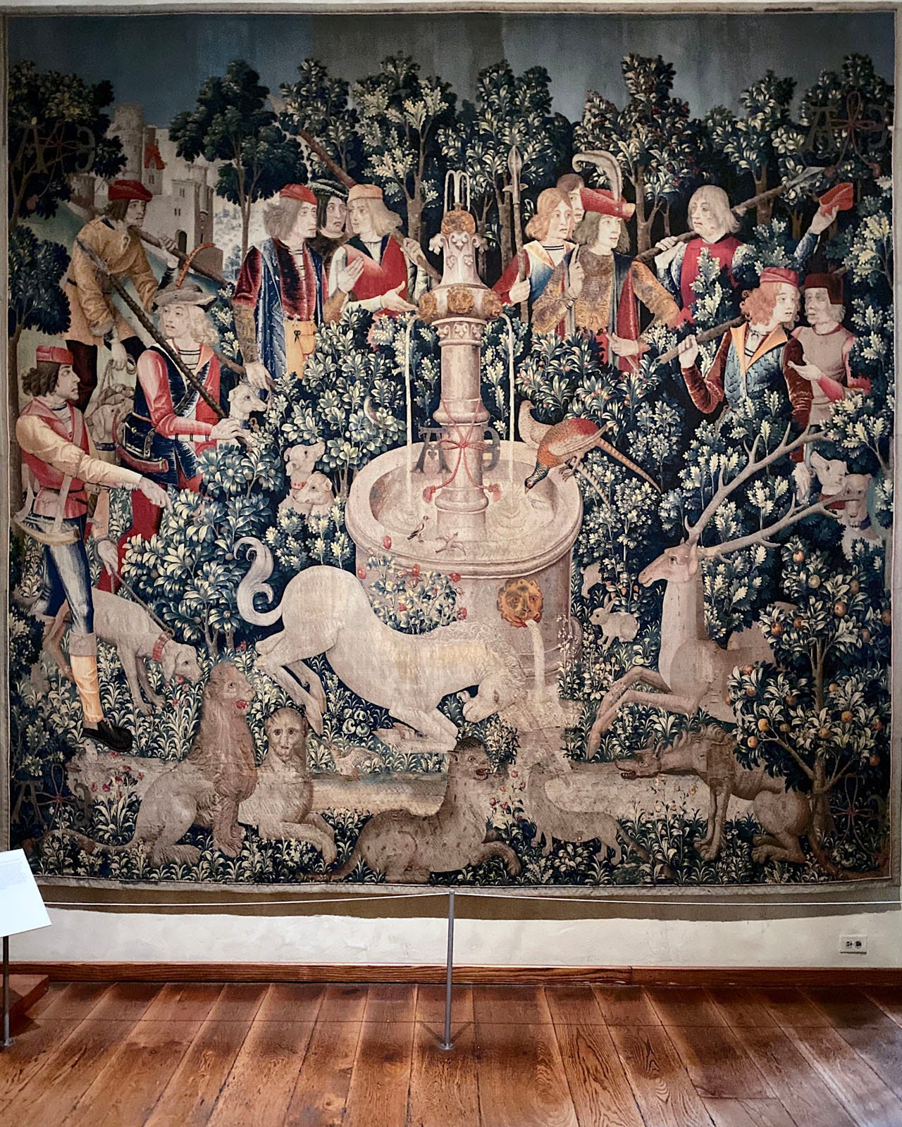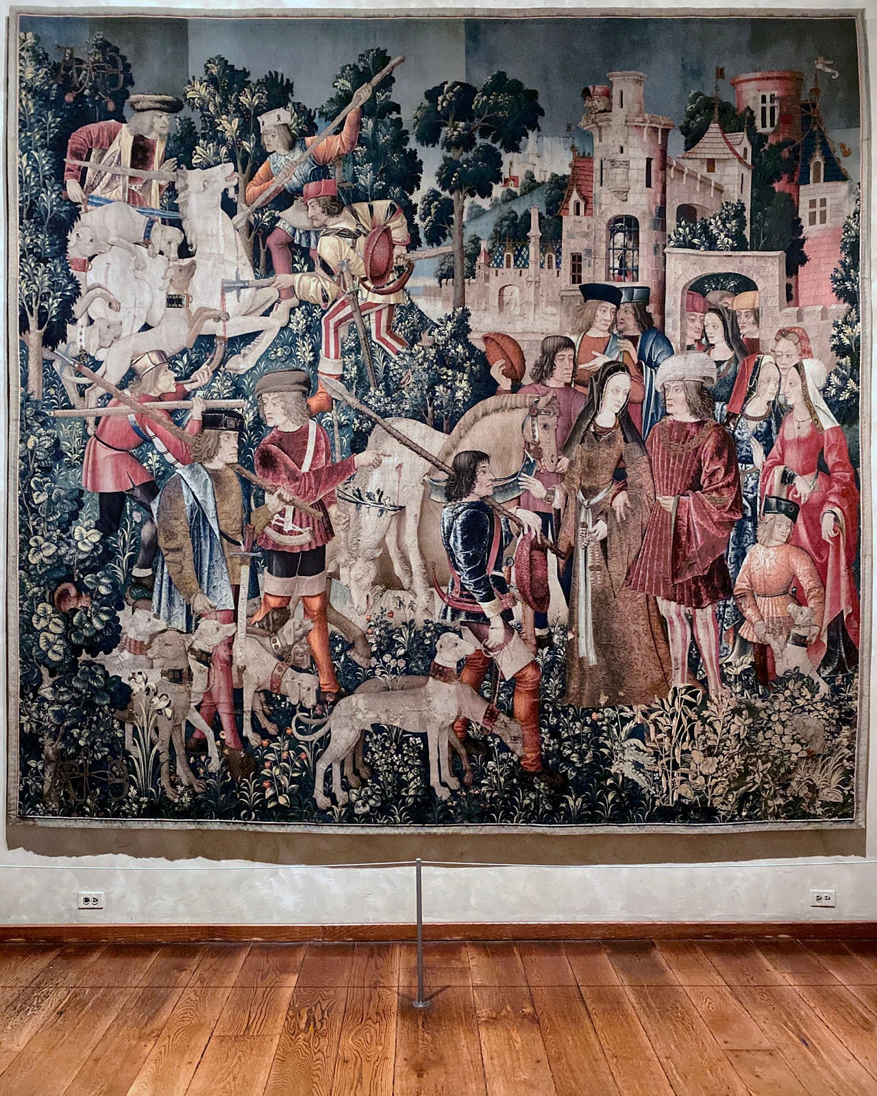 In the below, I show photos of both the original and reproductions for the “Hunt for the Unicorn” cycle (figures 6-16), and the originals of “The Lady and the Unicorn” (figures 17-32).