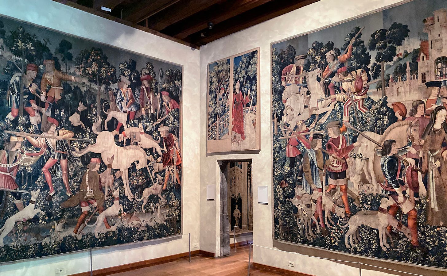 Thanks for this. The two sets were exhibited together at the Grand Palais in Paris from late October 1973 to January 1974 and then at the Metropolitan Museum of Art in New York from February to April 1974. https://www.nytimes.com/1974/02/08/archives/met-is-international-host-to-a-gathering-of-unicorns.html?unlocked_article_code=1.UE8.qLaa.lrl0xtMRmYZU&smid=url-share