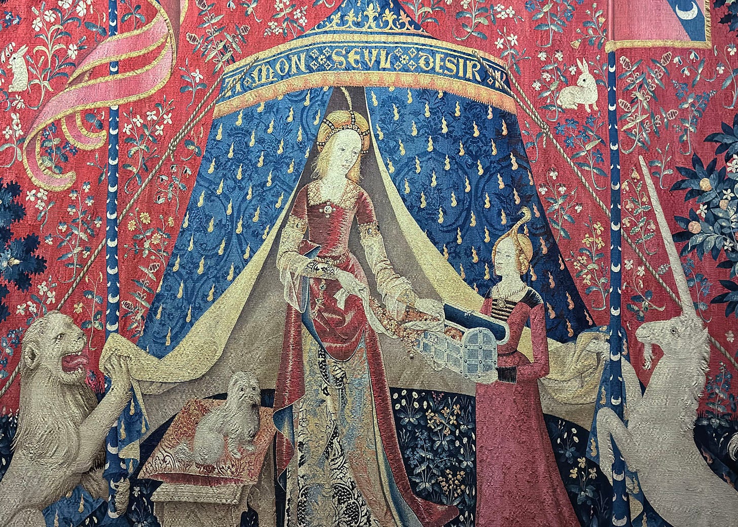 The sixth, inscribed “À mon seul désir,” is traditionally interpreted as representing a “sixth sense” — either reason, understanding, or the renunciation of earthly desire — positioned as the culmination of the cycle.