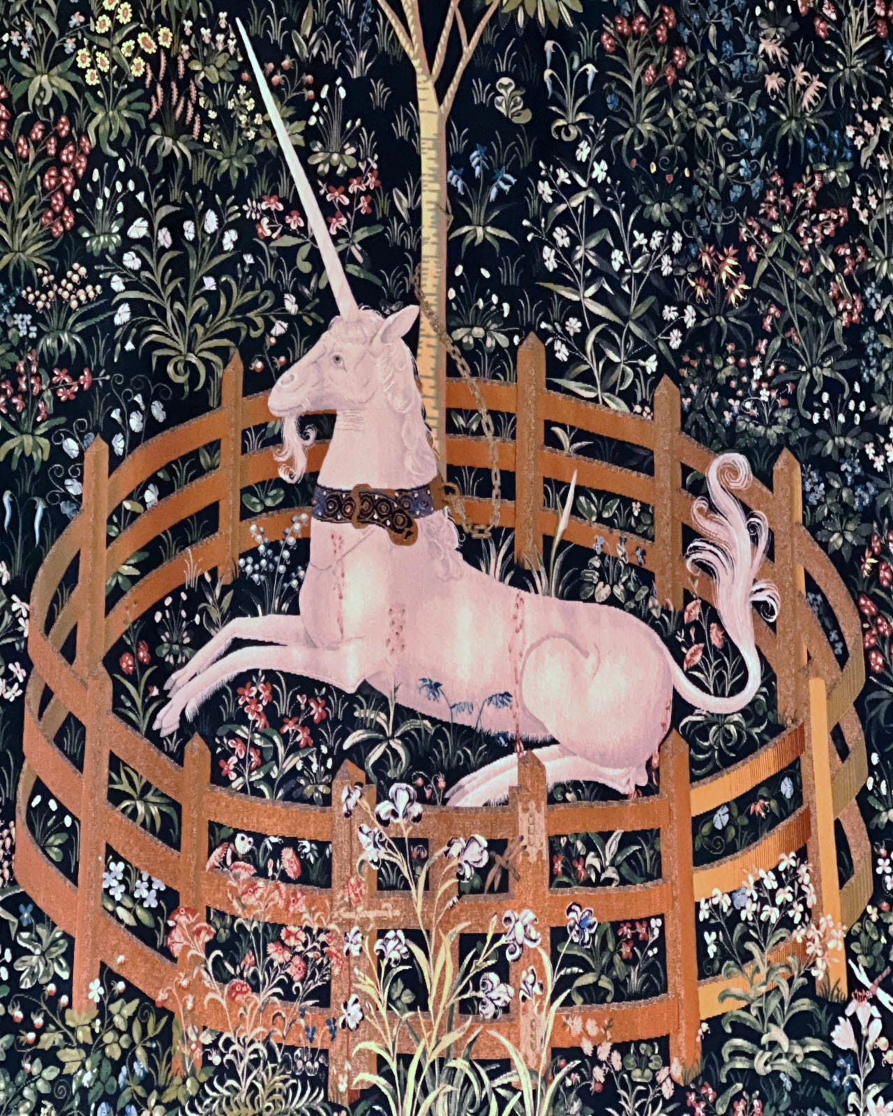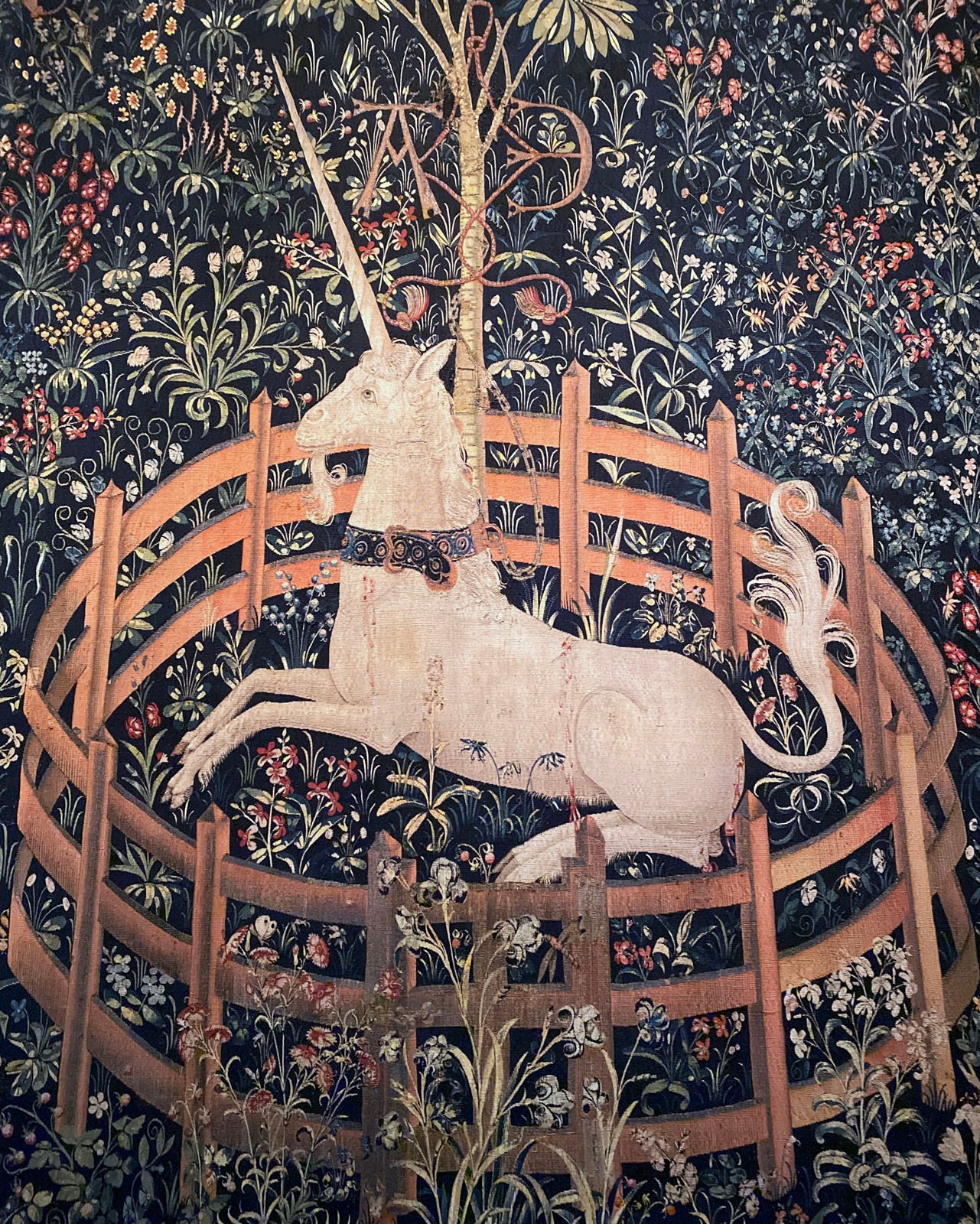 Last month I posted essays on “The Art of Medieval Tapestry” and “The Unicorn in Medieval Thought”. This post finishes off a little trilogy with those, exploring the two most famous tapestry cycles of the Middle Ages — the seven-tapestry “Hunt of the Unicorn” held at the Met Cloisters (NYC), and the six-tapestry “The Lady & the Unicorn” held at the Musee de Cluny (Paris).