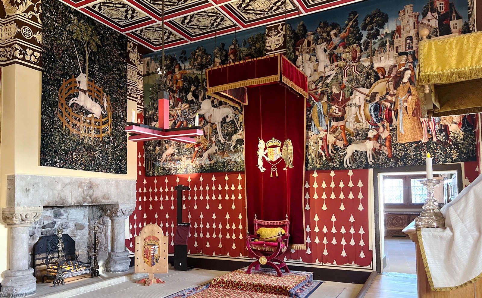 In addition, based on the theory that a similar set of unicorn tapestries once hung at Stirling Castle (recall from my unicorn essay that the Stuarts used the unicorn in their heraldry), a set of very high quality reproductions were created for it. Since 2015 these have hung in the queen’s quarters as part of a project to furnish the castle as it would have been in the 16th century.
