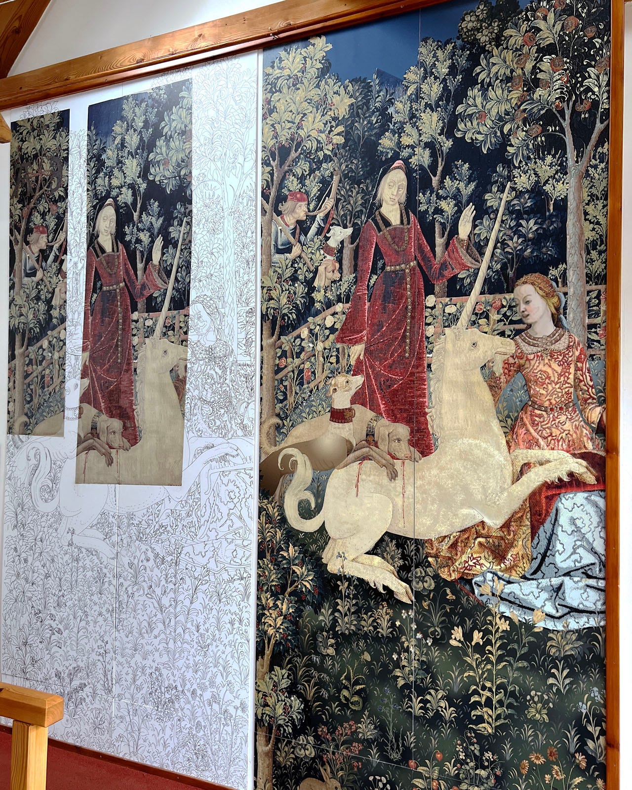 Having already visited the Met Cloisters, seeing the “Hunt for the Unicorn” tapestries in Stirling Castle (figure 1) was a big surprise to me, but I enjoyed the fact that they were displayed in a likely original context and that they did such an excellent job with the reproductions.